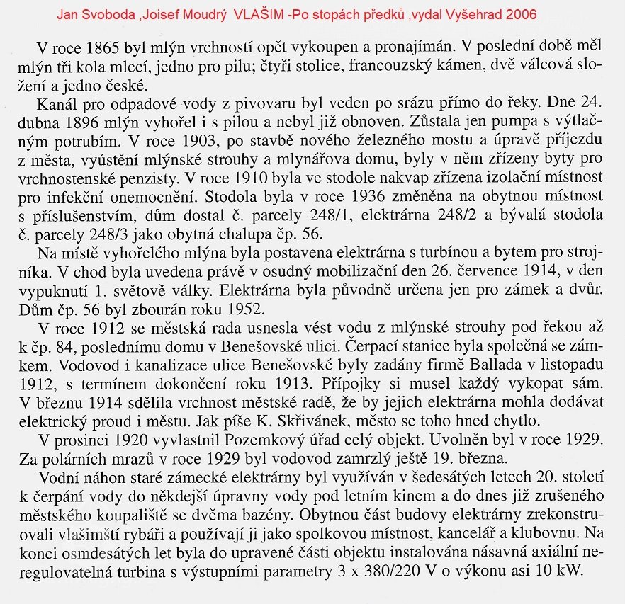 26.7.1914 na místě mlýna postavena elektrárna s turbínou a bytem strojníka