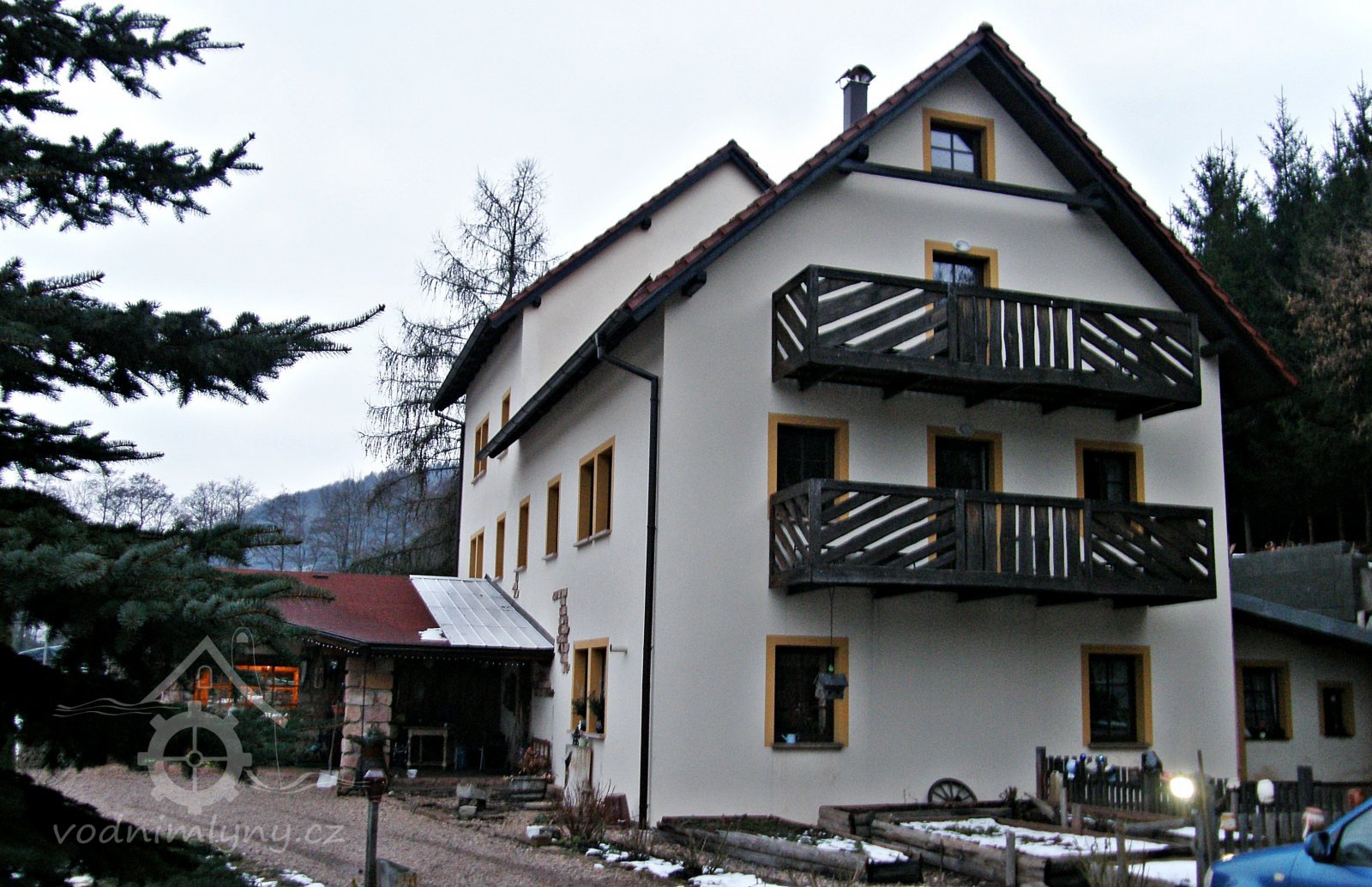 Bývalý mlýn zcela adaptovaný na penzion.
