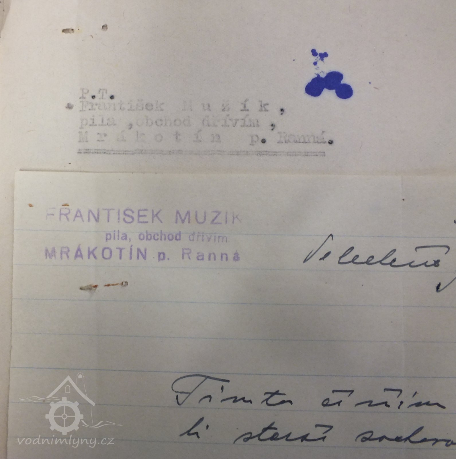 V roce 1930 1 kolo na vrchní vodu; průtok 0,112 m3; spád 4,20 m; výkon 2,5 HP.