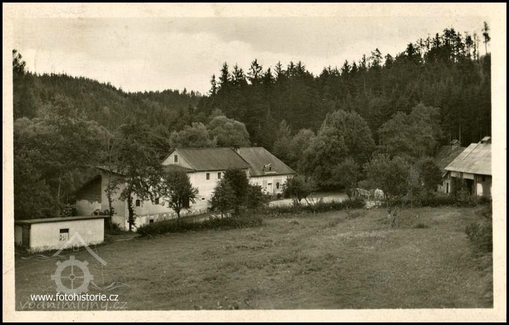 Mlýn na historické pohlednici, cca 1933, © autor neznámý, viz. aukro.cz