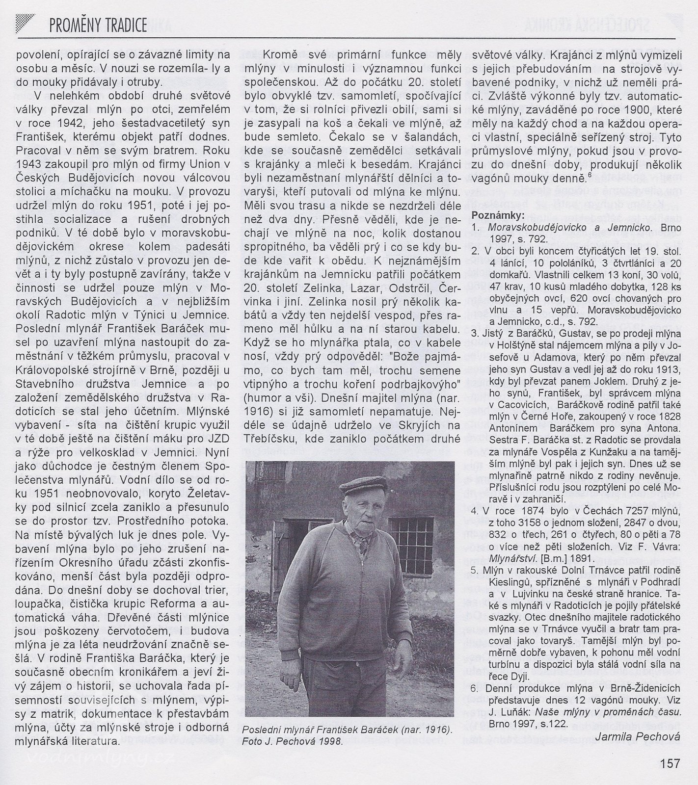 Baráčkův mlýn –v letech 1843 – 1849 provedl předek rodu Baráčků, který měl mlýn v Hardeku v Rakousku výměnu mlýna s radotickým mlynářem. Mlýn měl 2 složení, 2
