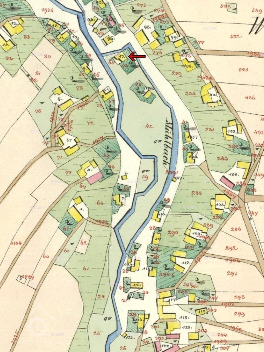V roce 1930 je zde uváděna v seznamu vodních děl mlynářka Františka Čechalová, mlýn.