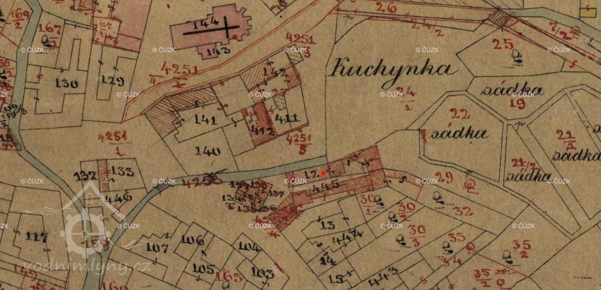 Popis1930: 1 kolo na spodní vodu, hltnost 0,751 m3/s, spád 1,3 m, výkon 3,89 HP