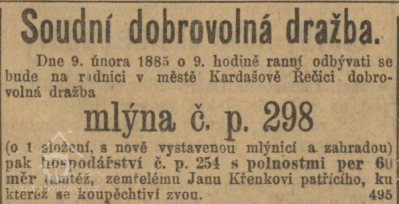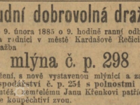 1885 dražba po zemřelém Janu Křenkovi. (RR)