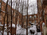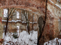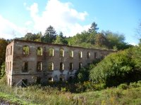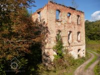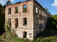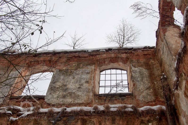 Zřícenina velkého vodního mlýna stojí o samotě u železniční tratě nedaleko obce Radkov u Moravské Třebové.