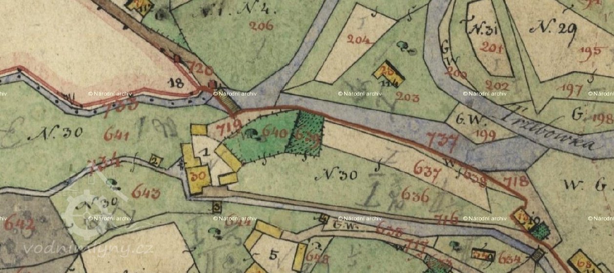1651 Soupis poddaných podle víry: mlynář Jan Kunc (30 let), manželka Dorota (25), matka Kedruta Kuncka (60), učedlník Antonín Rychnovský (18)