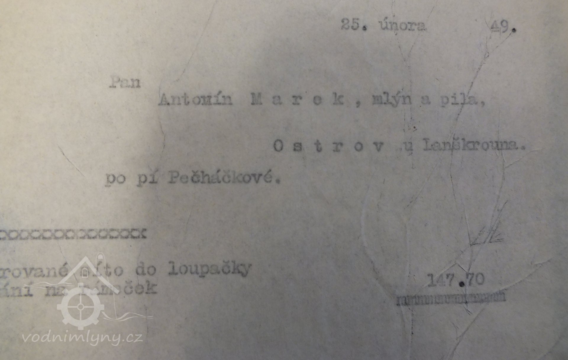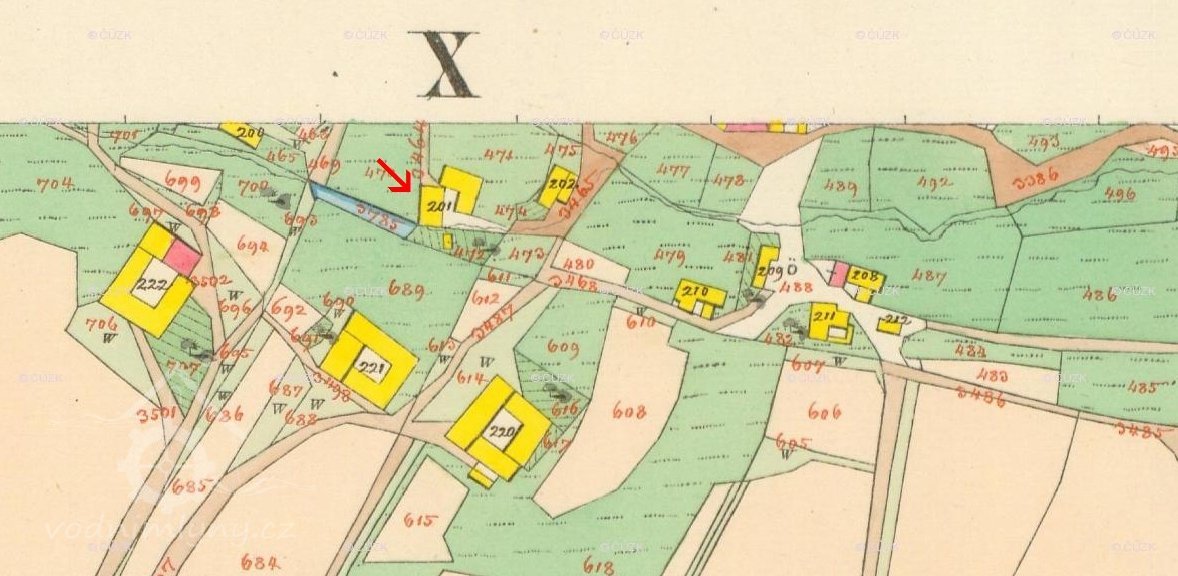 Popis1930: 1 kolo na svrchní vodu, hltnost 0,135 m3/s, spád 3,4 HP, výkon 4 HP