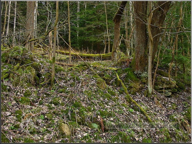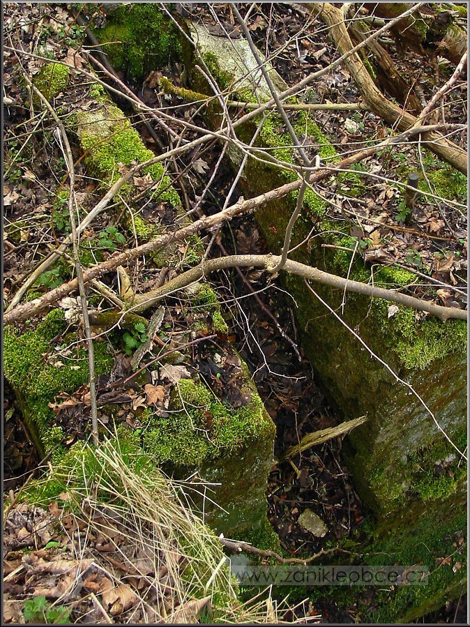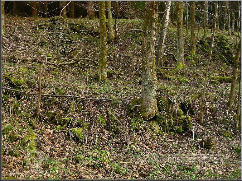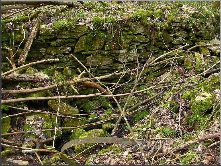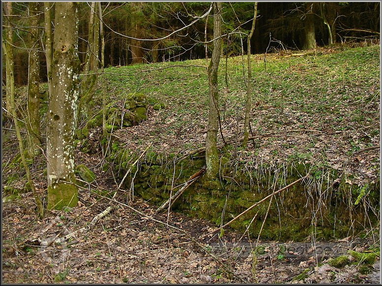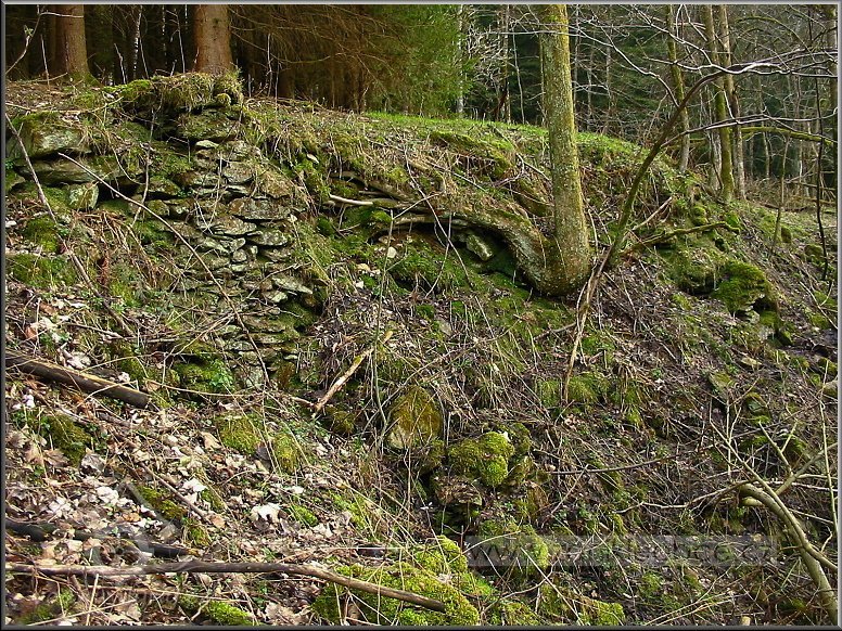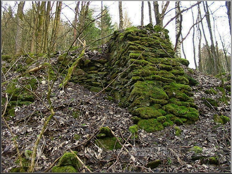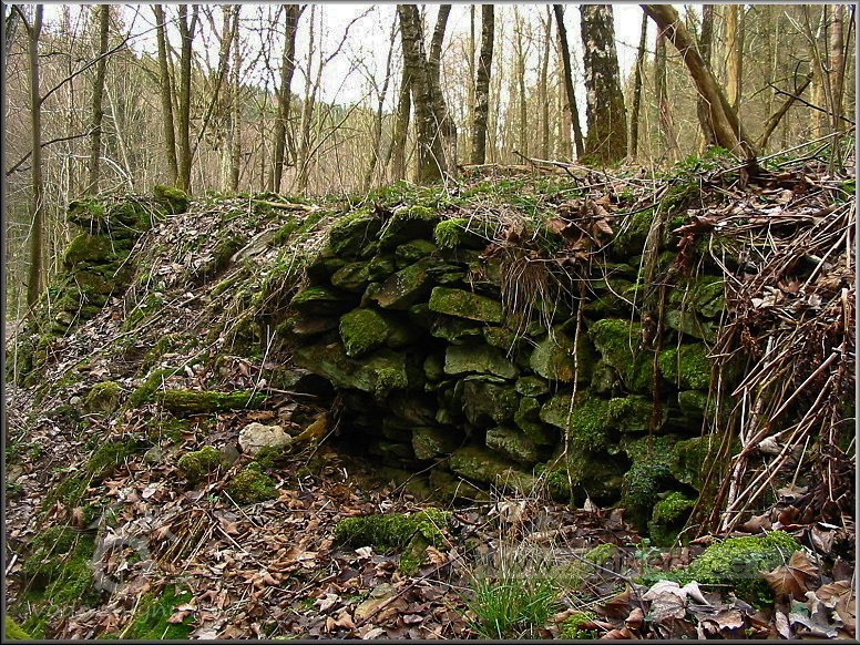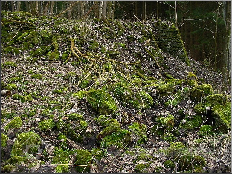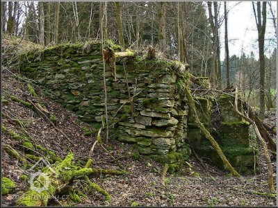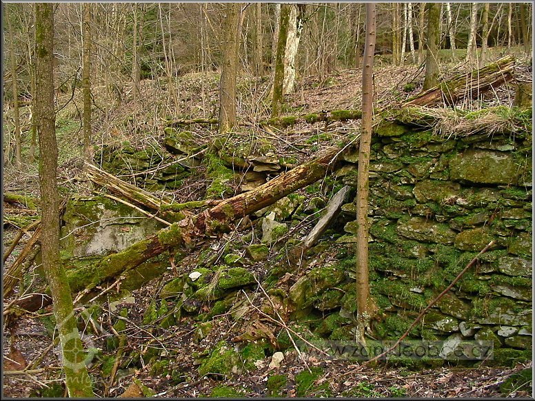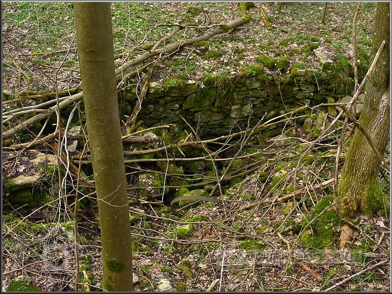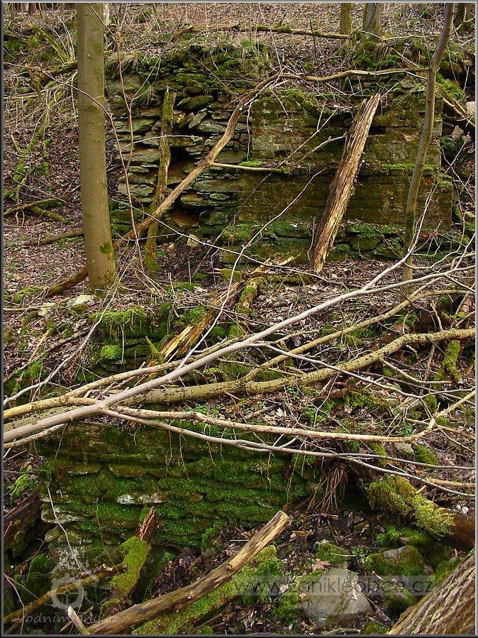 Pozůstatky hlavní mlýnské budovy pod zatáčkou cesty od Zadních Chalup ke Sv. Kateřině, 04 2011, © Petr Bílek