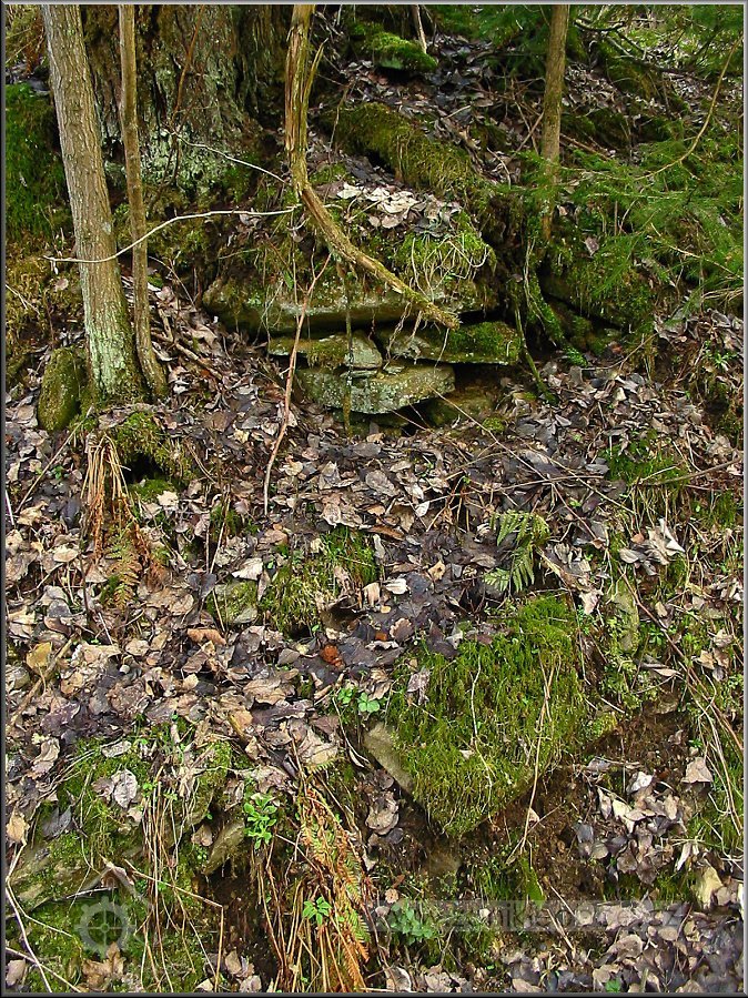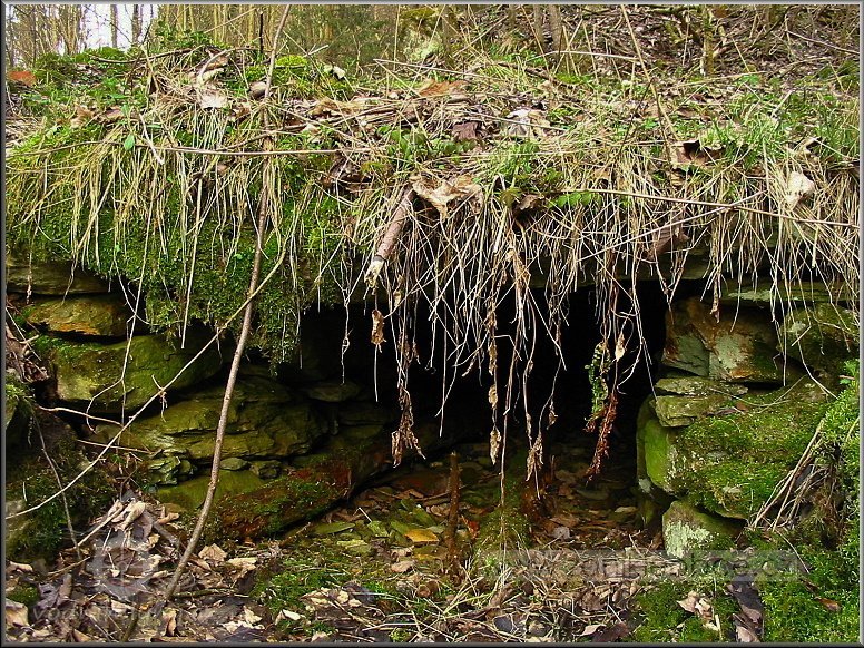 Sklep s pozůstatkami základů pod ruinami předešlého stavení nad mlýnem, 04 2011, © Petr Bílek