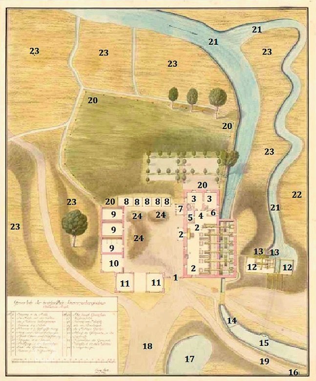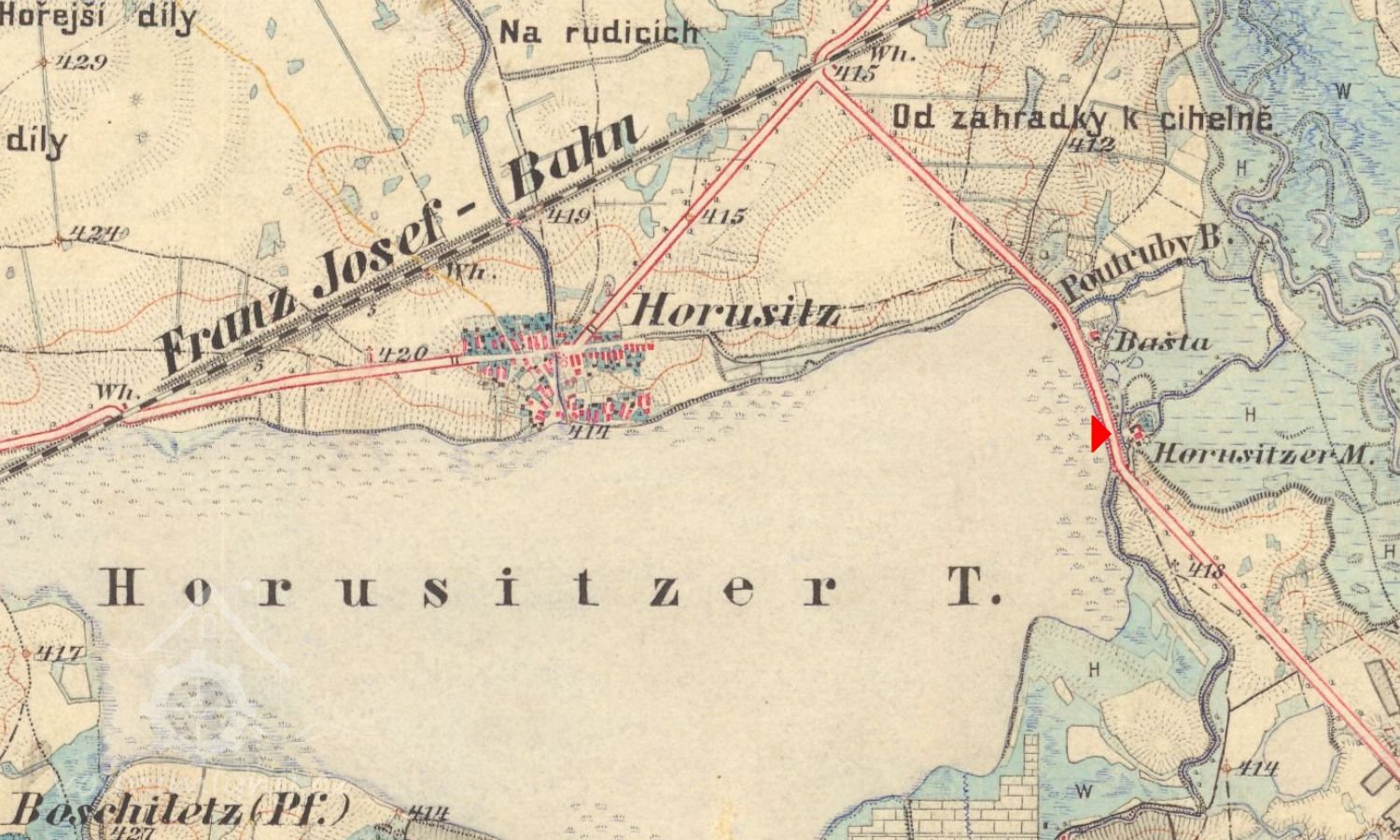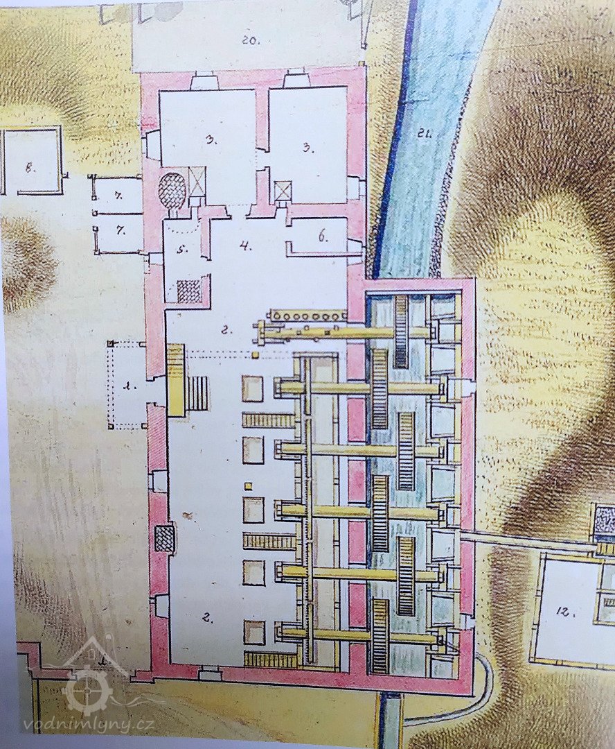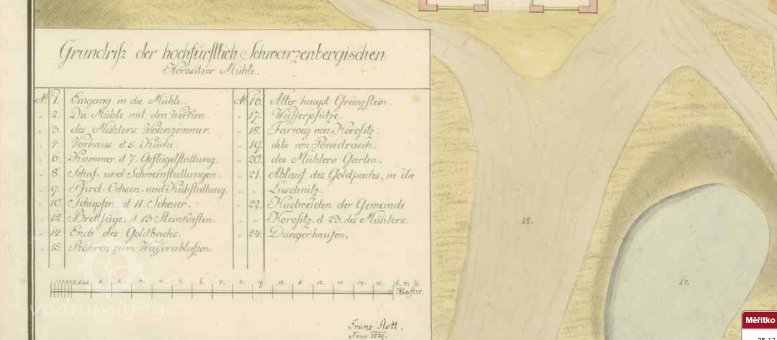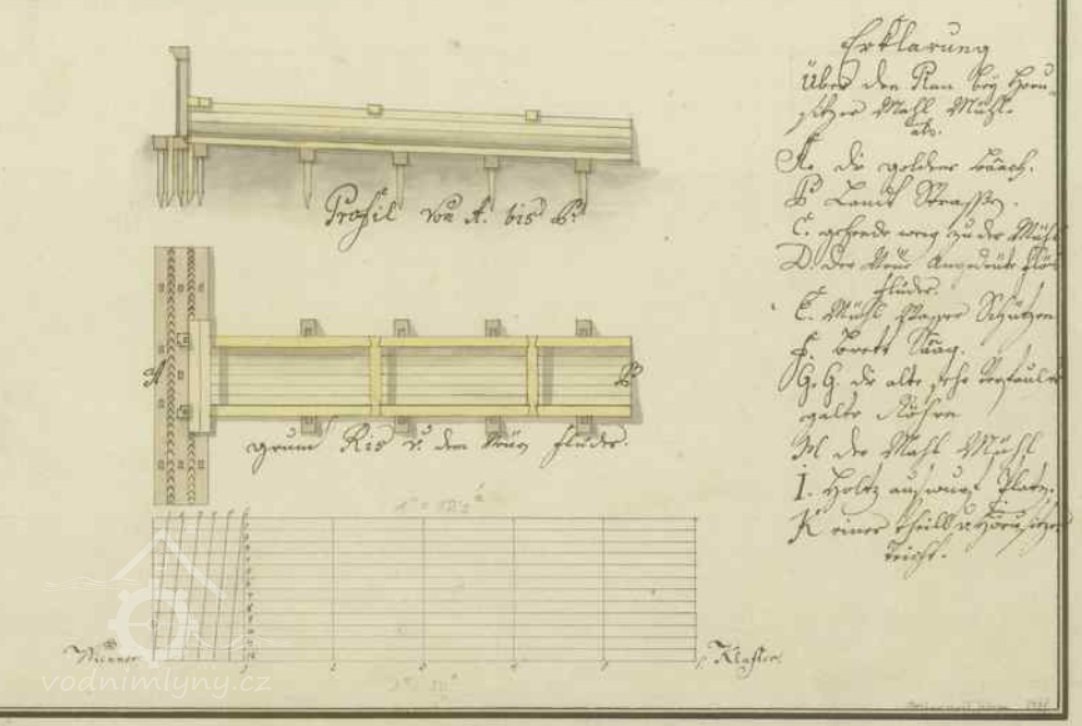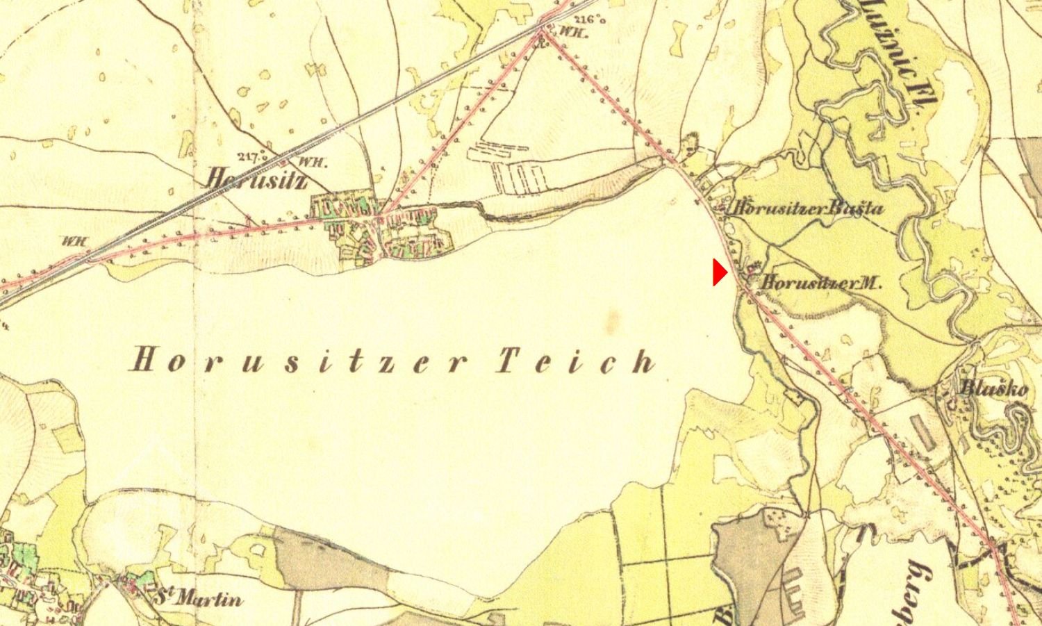 1579 Václav Břežan: "Mlýn pod rybníkem Veselským (Horusickým), kterýž také z gruntu se staví."