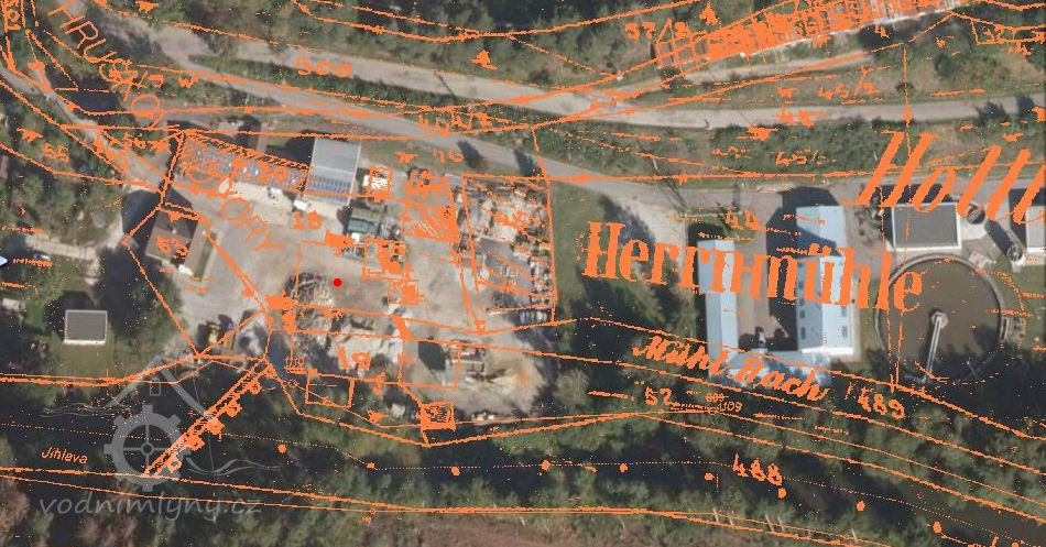Historický mlýn v oblasti Královského horního města Jihlavy. Zbořený a poblíž postaveny nové budovy.