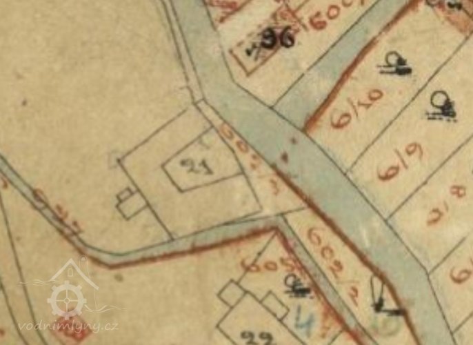 PopisV r. 1930 zde byla Francisova turbína, průtok 0,242 m3/s, spád 5,5 m, výkon 13,5 k. (RR)
