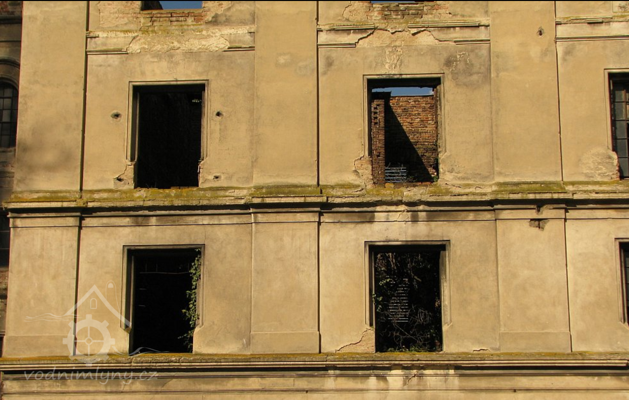 1926 - mlýn vyhořel, pozůstatky požáru jsou patrné na západní straně mlýna - nebylo obnoveno