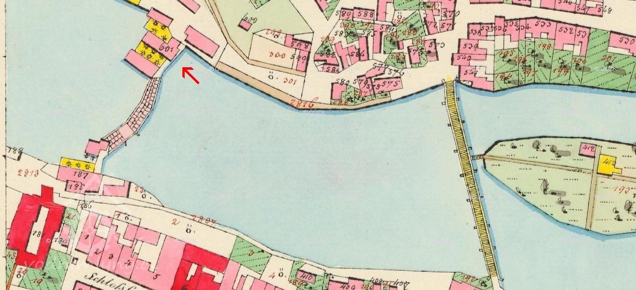 1592 u mlýna zřízeno čerpadlo vodárny, voda čerpána do bašty na skále nad mlýnem a odtud vedená železnou troubou po mostě do města