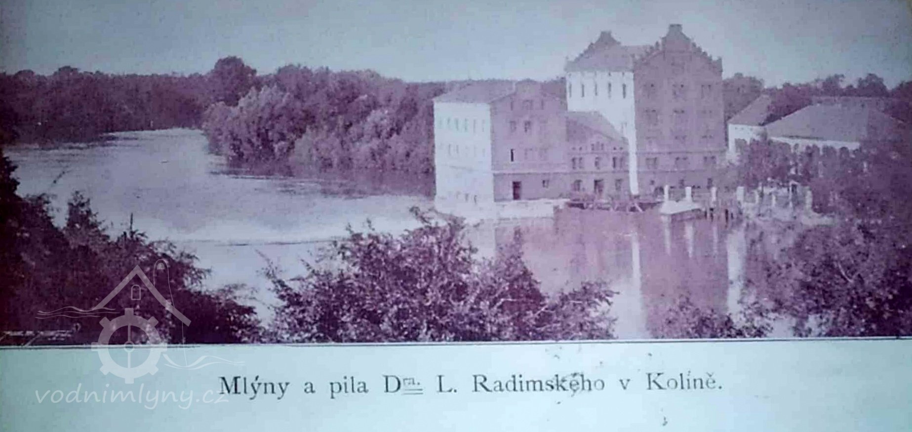 V roce 1851 mlýn koupil čelákovický mlynář Jan Radimský  (1818-?) a od roku 1864 byl v majetku jeho syna JUDr. Václava Radimského (1839–1907), právníka, kolínského starosty a později i zemského politika. Za něho roce 1868 mlýn vyhořel a v září roku 1870 získal povolení ke stavbě nového, moderního mlýna podle projektu kolínského stavitele Vincence Václavíka. Z roku 1877 se dochovaly plány na nerealizovanou dostavbu mlýna, kterou vypracoval stavitel Josef Blecha původem ze Štítar. V roce 1895 předal Václav Radimský mlýn svému synu JUDr. Ladislavu Radimskému (1871-1922). Nedlouho poté, počátkem března 1901, byla budova těžce poškozena velkou vodou, ale následně byla opravena. Ladislav Radimský se společníky založil roku 1912 v objektu mlýna továrnu na konzervy Bohemia (později továrna na konzervy, suchary a cukrovinky), která vyráběla drůbeží konzervy, zvěřinové paštiky apod., s nimiž se pokoušel pomocí bratra, malíře Václava Radimského, proniknout i na francouzský trh. Za první světové války byla výroba přerušena, po roce 1918 se ji podařilo obnovit. Dne 6. října 1918 mlýn vyhořel, ale rychle byl opraven. V roce 1923 přistavěl kolínský stavitel Jan Sklenář k zadní (severozápadní) části mlýna budovu porážky pro hovězí dobytek. V roce 1926 mlýn opět vyhořel, pozůstatky po požáru jsou v západní části objektu, která již nebyla obnovena, znatelné dodnes.