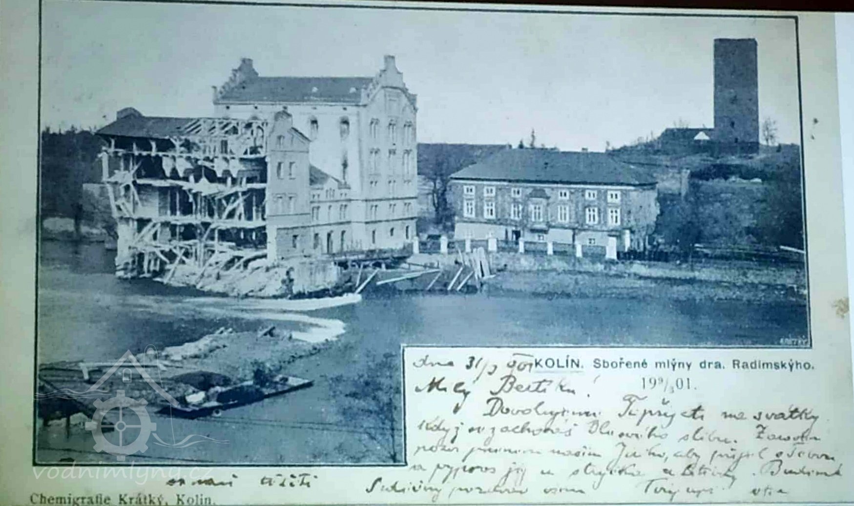 1895 - mlýn v majetku JUDr. Ladislava Radimského, pozdějšího zemského poslance a člena panské sněmovny a dlouholetého předsedu Ústředního spolku mlynářů v Praze