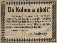 1870 - povolení ke stavbě nového mlýna podle projektu kolínského stavitele Vincence Václavíka