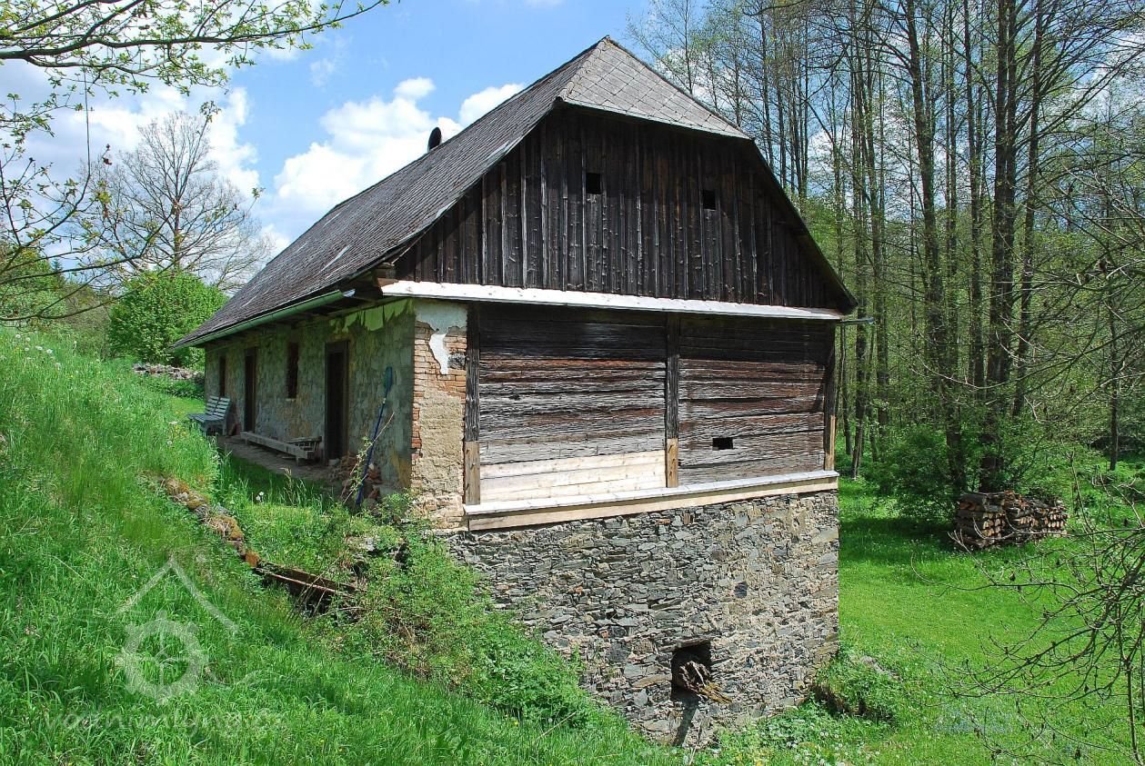 zděná stodola s roubenými výplněmi a rybník s podkovovitou sypanou hrází. Zbývající části vodního