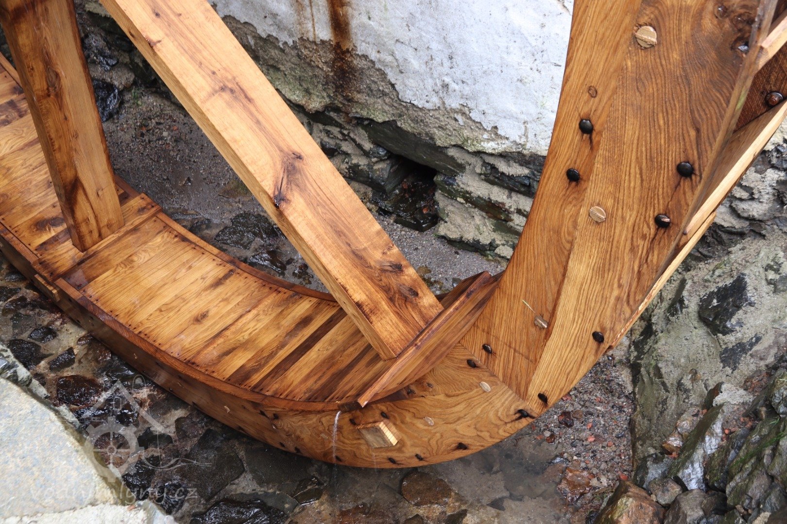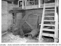 1930: 1 kolo na svrchní vodu, hltnost 0,05 m3/s, spád 4,92 m, výkon 2,1 HP, prům. 5 m, hloubka korečků 30 cm, šířka 50 cm.