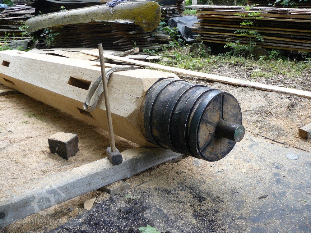 Z rybníka voda vedena potrubím v hrázi do žlábku, na který navazovala dřevěná vantroka.