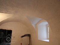 Suterén, přístupný samostatnými vstupy v severovýchodním průčelí, je příčně rozdělen na 3 díly. Střední díl, původně vstupní, je podélně rozdělen na 2 trakty - chodbu (vstupní síň) při jihovýchodním průčelí a sklepní místnost pod síní. Obě místnosti jsou zaklenuté půlkruhovými valenými klenbami s pětibokými výsečemi.