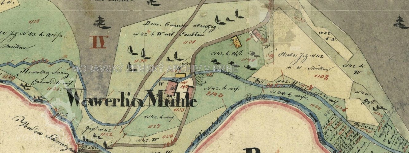 Dne 28.3.1696 je u křtu Scholastiky z Domašova kmotrem Jiří Vaverka mlynář pod Javůrkem. [Matrika Ostrovačice, NOZ 1665-1724, číslo knihy 1530b, fol.41]