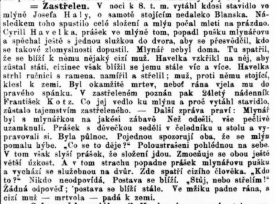 Dne 12.2.1695 je u křtu Matěje Sedláka z Javůrku kmotrem Kašpar Kotek mlynář z Vaverkového mlýna. [Matrika Ostrovačice, NOZ 1665-1724, číslo knihy 1530b, fol.38]