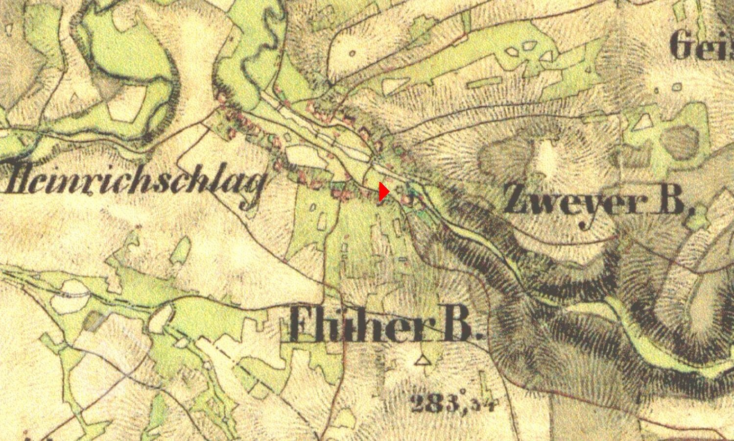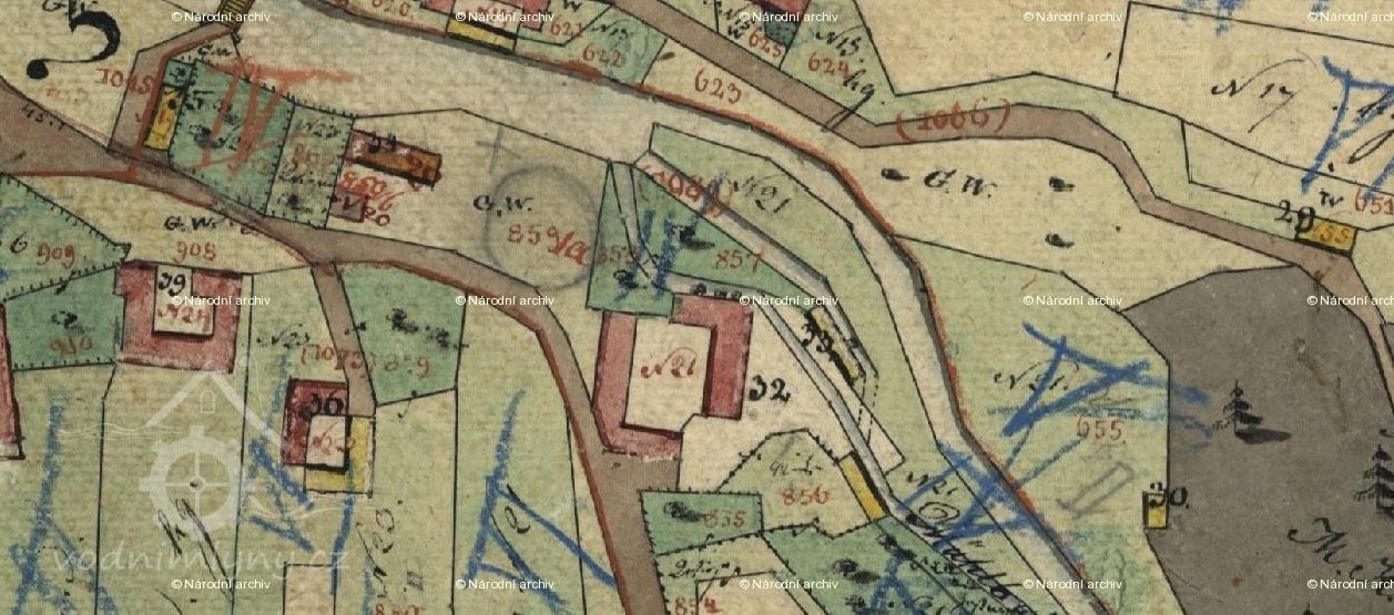Urbář z r.1770 uvádí - Číslo v urbáři 7, číslo domu 21 - Andreas Hamerschmied má mlýn na stálé vodě .
