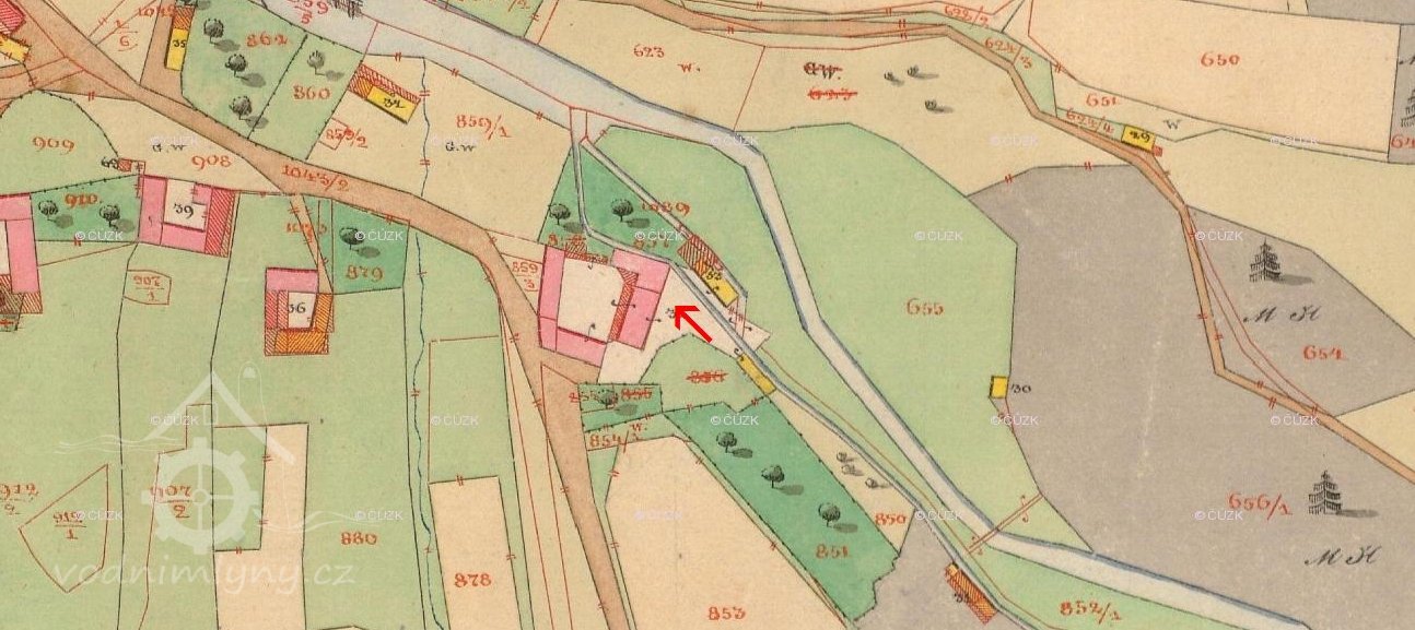 Popis1930: 1 kolo na spodní vodu, hltnost 0,28 m3/s, spád 3 m, celk. výkon obou kol 20 HP