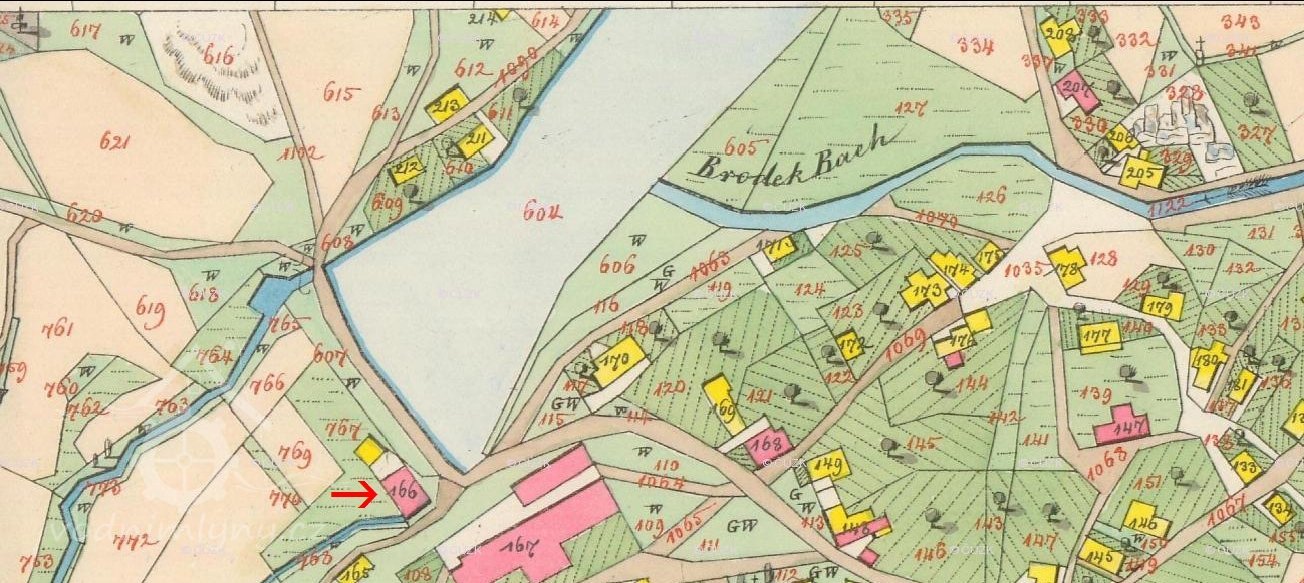 Mlýn stojí pod hrází zrušeného rybníka, který byl napájen potoky Javorkou a Lhotským.(HŠ)