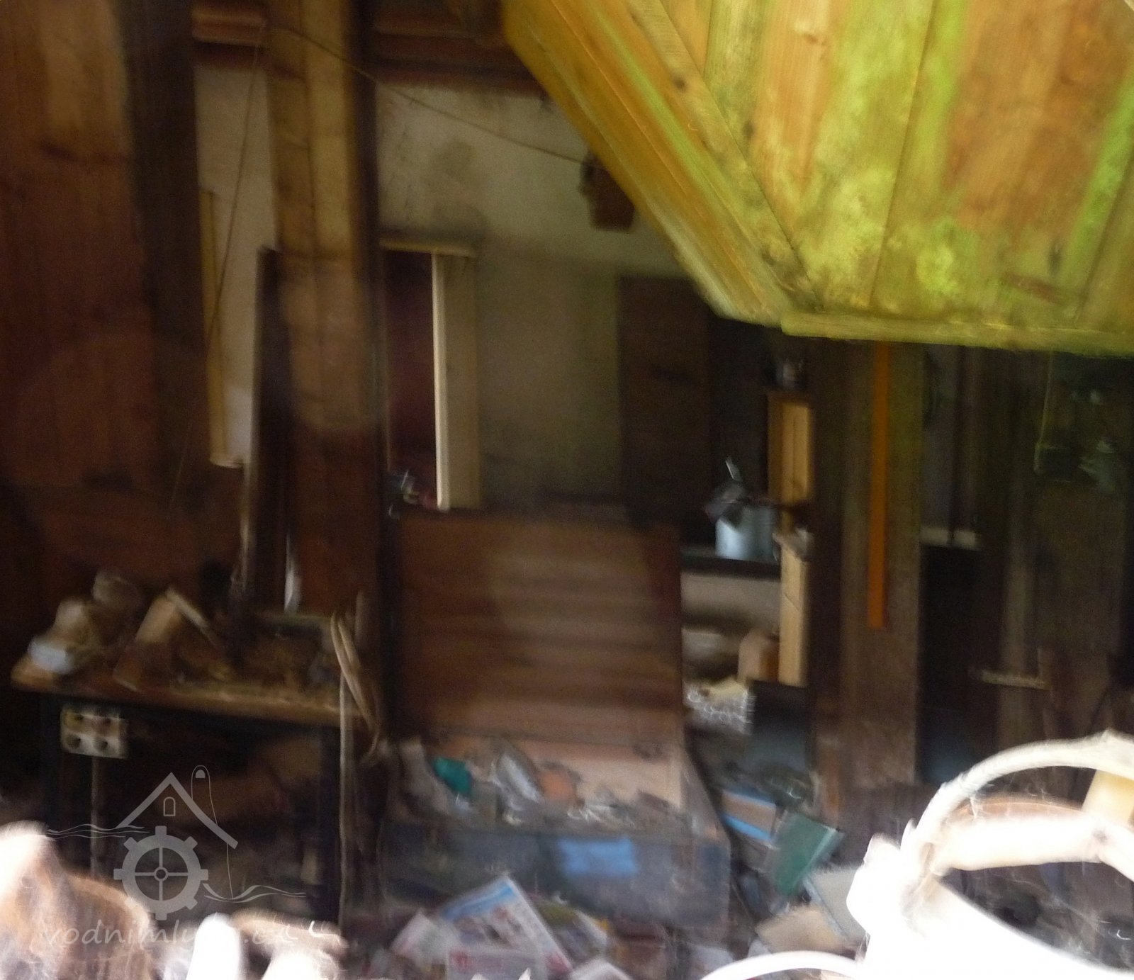Ve mlýně jsou zbytky zařízení mlýnice - násypka - foto oknem (HŠ)