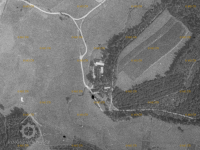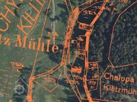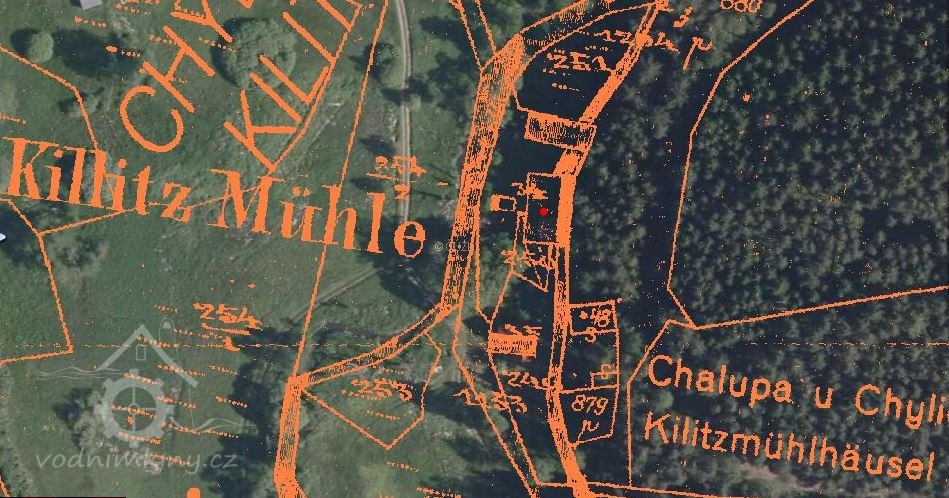Bývalý Chylický mlýn. Přístupný ze silnic Chylice-Svinov.