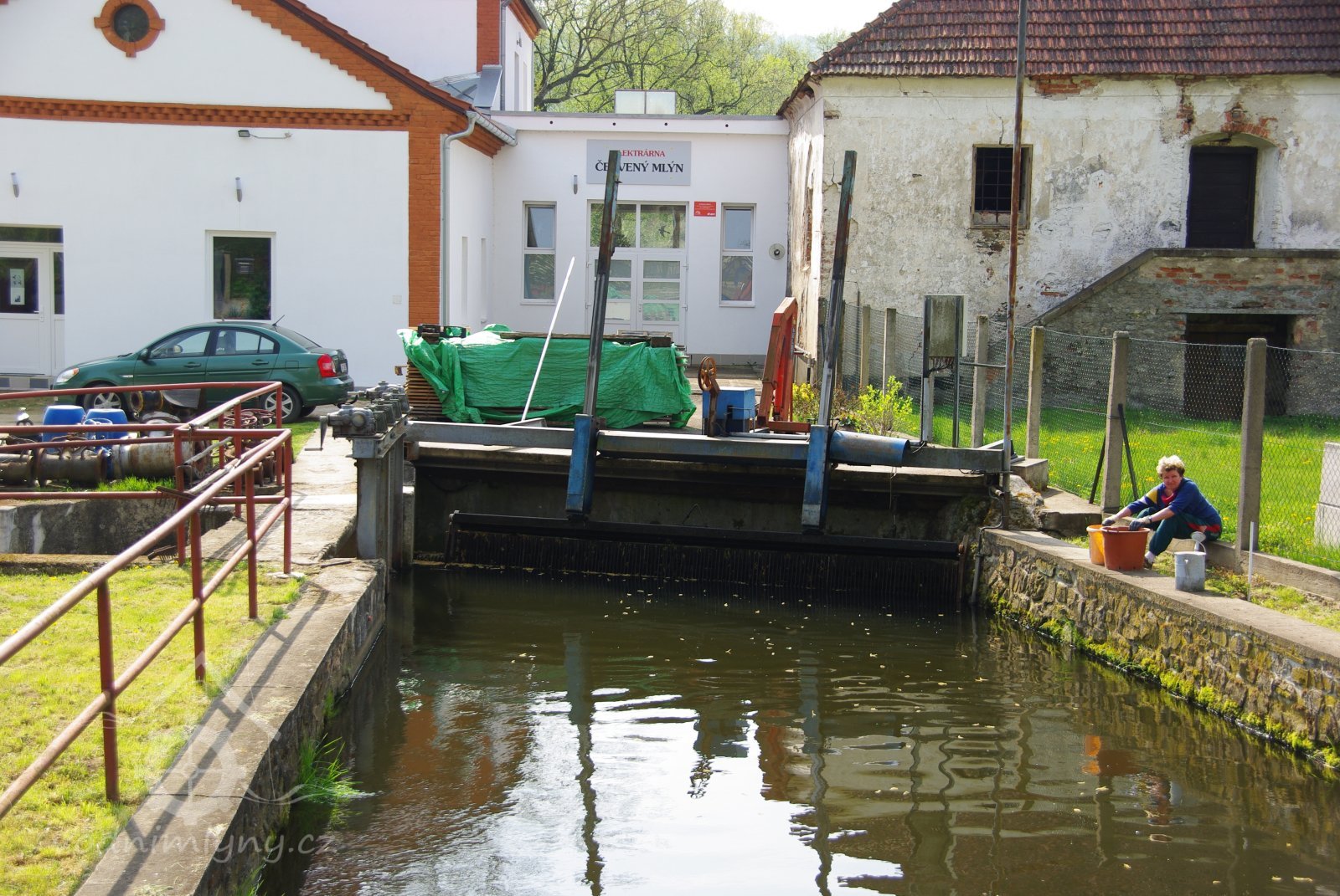 Mlýn s turbínou, který vyrábí elektřinu