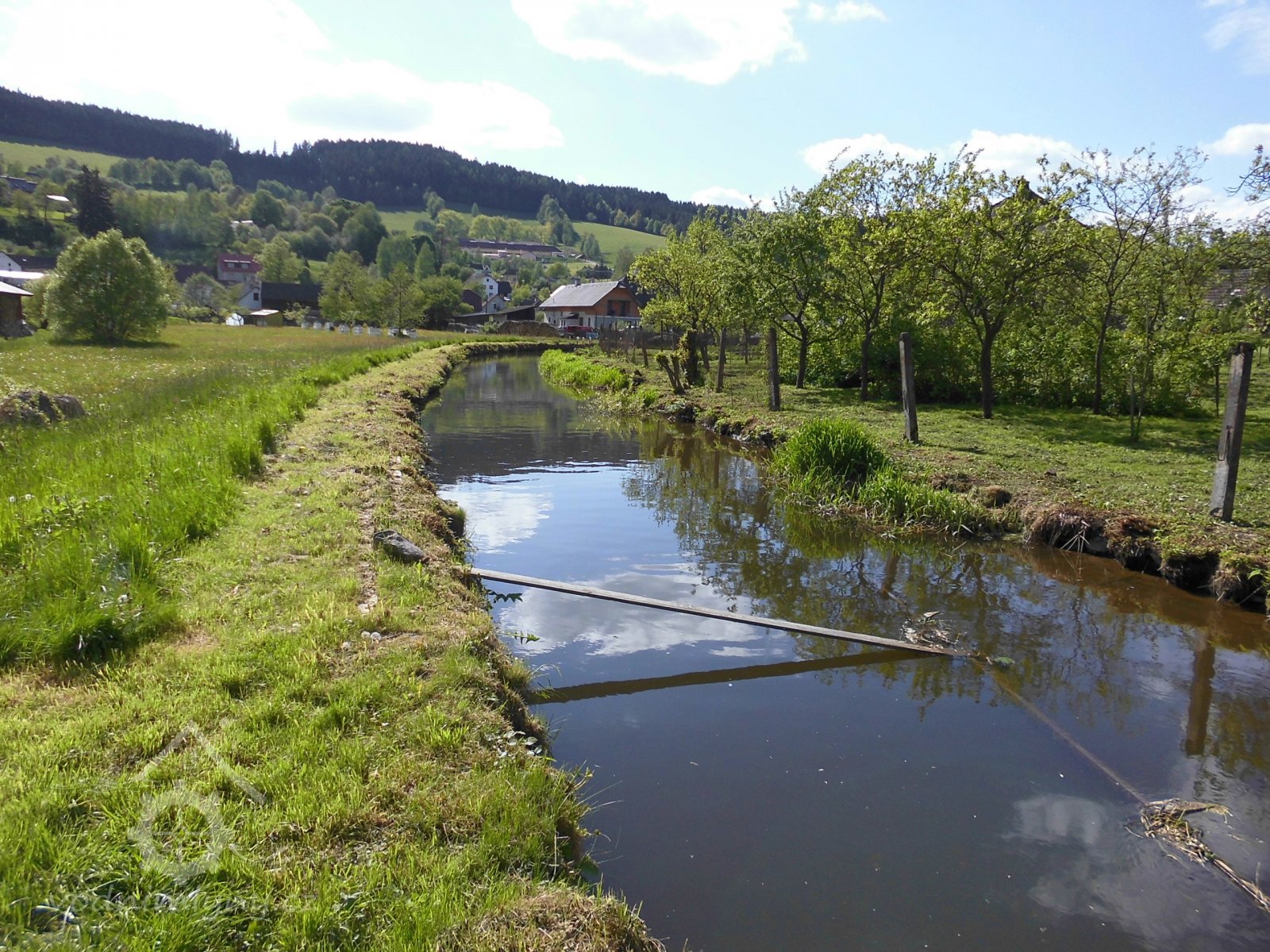 Náhon začíná nad jezem kousek pod bývalou textilní továrnou a nedaleko od koryta řeky prochází obcí až ke mlýnu. Náhon a jalový i odtokový kanál jsou opatřeny stavidly, která se při povodni uzavřou a zabrání tak vniknutí vody do levobřežní části obce, která je z části položena nízko nad hladinou a je chráněna hrází.