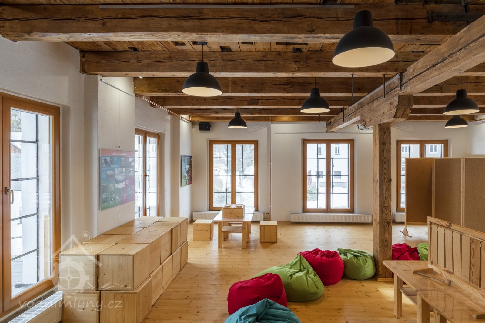 Současná budova byla vystavěna ve 30. letech 20. stol po ničivém požáru starého mlýna čp. 155, v té době mlýn získal čp. 110, jako objekt přináležející ke staré kosárně. Frankovi sjednotili náhon, dříve tam byly vedle sebe dva náhony, (pro pilu a pro mlýn) a v roce 1935 využili nejmodernější technologii a postavili nový stroní mlýn, který stojí dosud. Turbína, která tam byla a poháněla strojní mlýn, poháněla zároveň i výrobu kolejnic a později pilu, která stála za mlýnem, vedle kosárny. Objekt kosárny byl postaven v roce 1600, jak dokládá nápis na střešním kabřinci. Do dnešní podoby byl objekt kosárny přestavěn v roce 1759. V období 1645–1725 patřil do majetku knížecí Horní komory hamerní hutě. Protože výroba železa v hamrech zaostávala hamry byly zrušeny a objekt koupil Jan Michal Hartel. Tento kosař objekt zvětšil a vyráběl kosy, srpy, zemědělské nářadí a drát. V roce 1812 byla prodána Janu Heinrichovi a v roce 1845 převedena do vlastnictví mlynářky sousedního mlýna Josefě Langrové. Od roku 1898 vlastnil kosárnu mlynář Anton Frank, který objekt pronajímal, poté jeho syn Vilém Frank. V majetku mlynářů zůstala až do roku 1945, kdy byla kosárna přidělena Josefu a Jarmile Pelánovým. V roce 1974 byla kosárna pro rekreační účely zakoupena bruntálským Okresním vlastivědným muzeem. Od roku 1992 slouží jako muzeum.