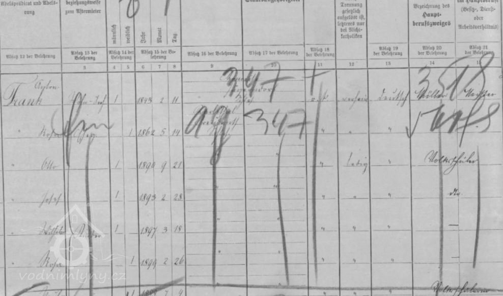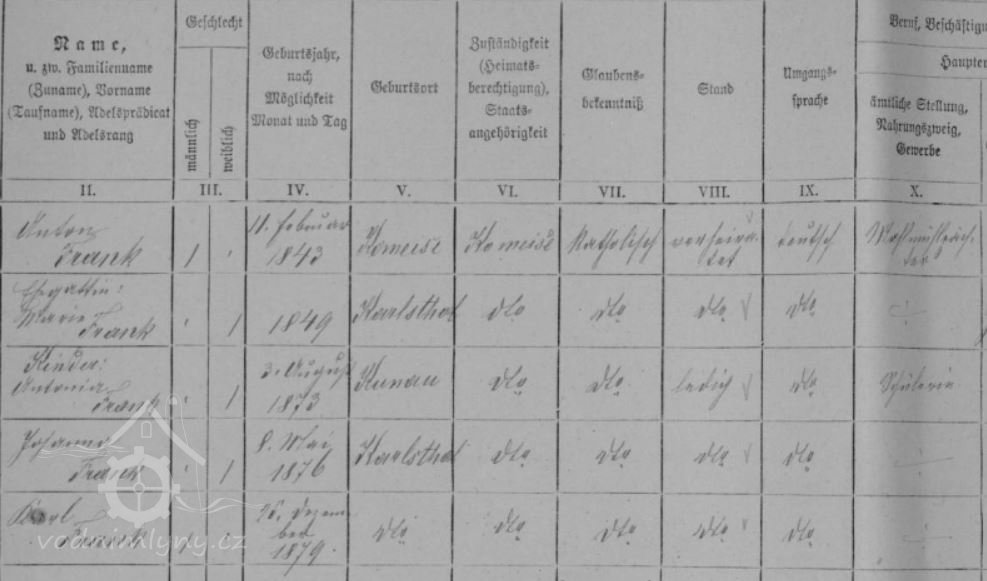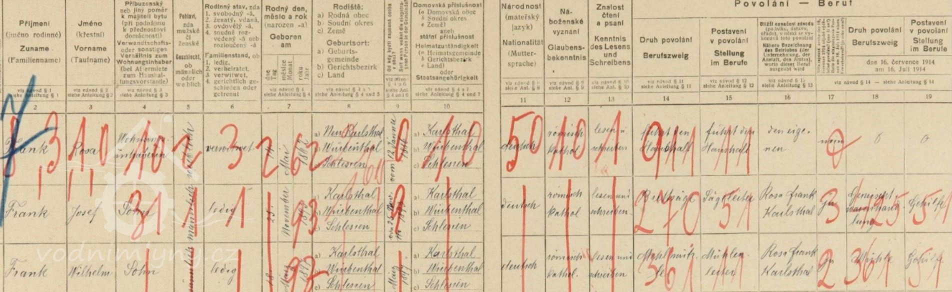 V roce 1921 vlastní mlýn vdova Rosa Frank nar. 1862, synové Josef a Wilhelm.