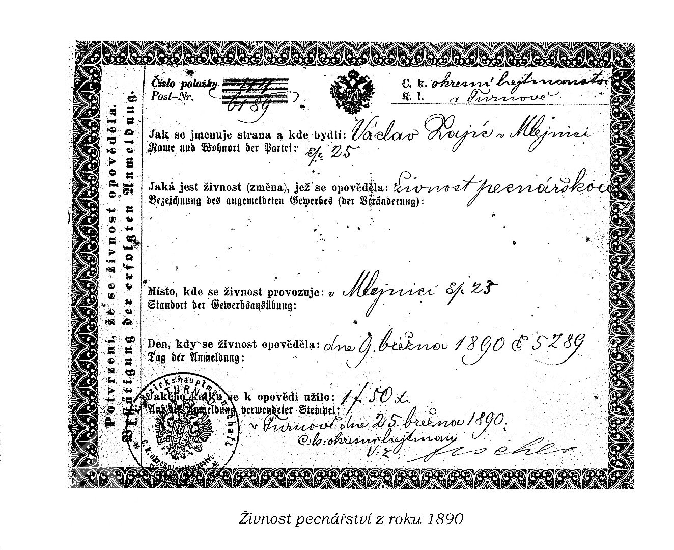 1890 Václavu Zajícovu udělena živnost pecnářství