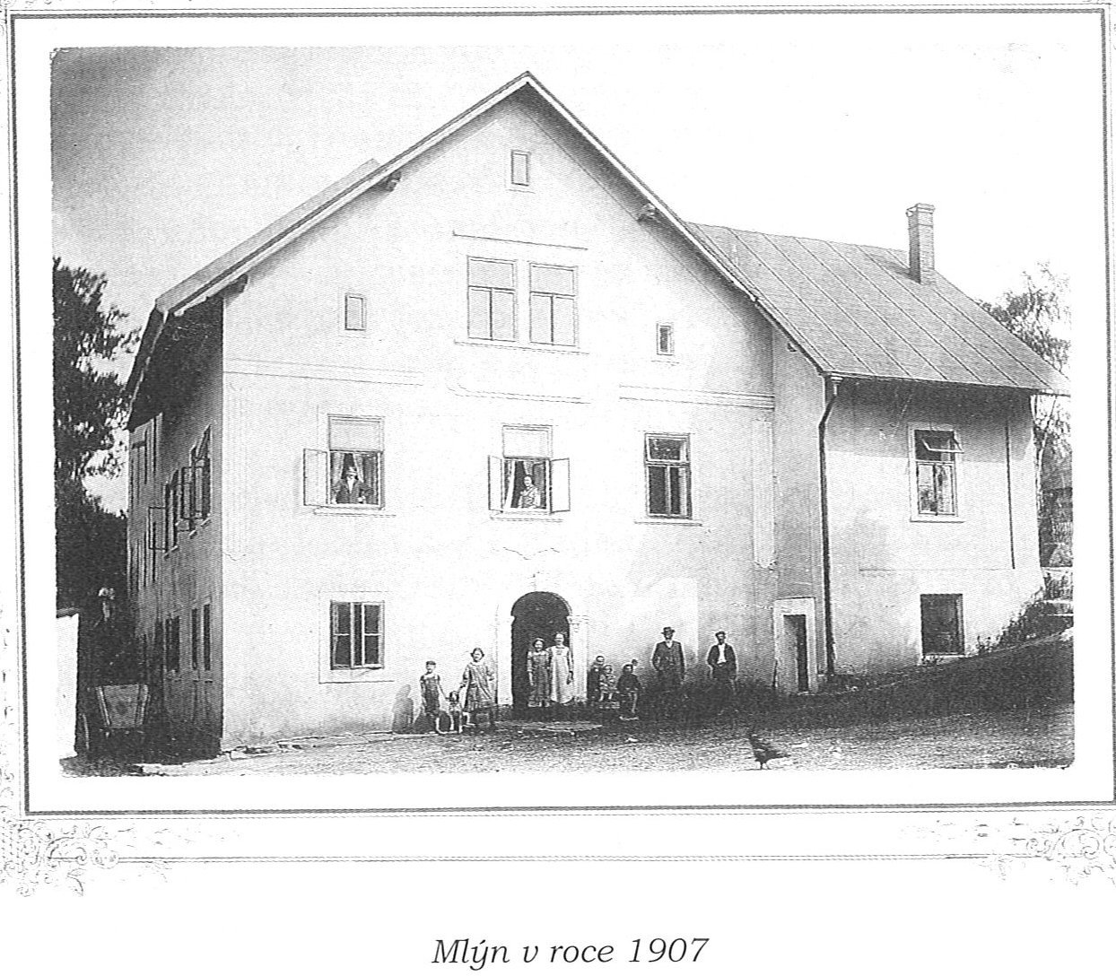 1907 - mlýn vyhořel, byl postaven do dnešní podoby, před požárem byla ve mlýně 4 kola, nahrazena turbínou s ležatým hřídlelem