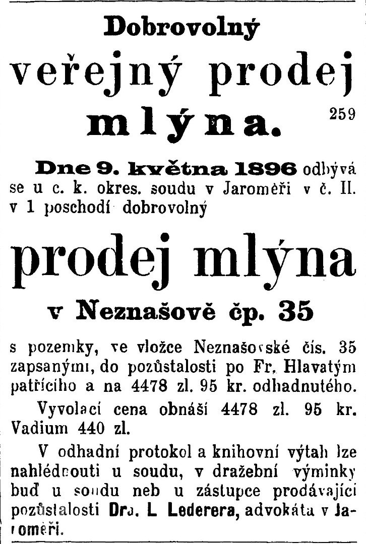 Původně poháněn vodním kolem na vrchní vodu, kolo ve třicátých letech 20. století nahrazeno turbínou. V provozu do roku 1954. O deset let později byl zrušen náhon a následně rybník. V současné době objekt přestavěn a veškerá technologie demontována.