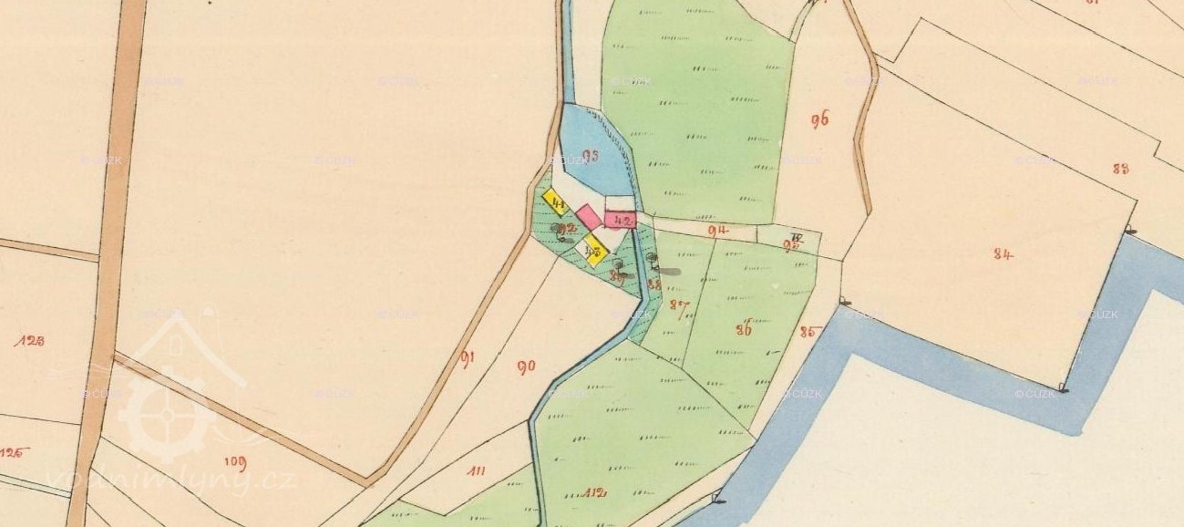 Popis193: 1 kolo na svrchní vodu, hltnost 0,052 m3/s, spád 5,4 m, výkon 4 HP