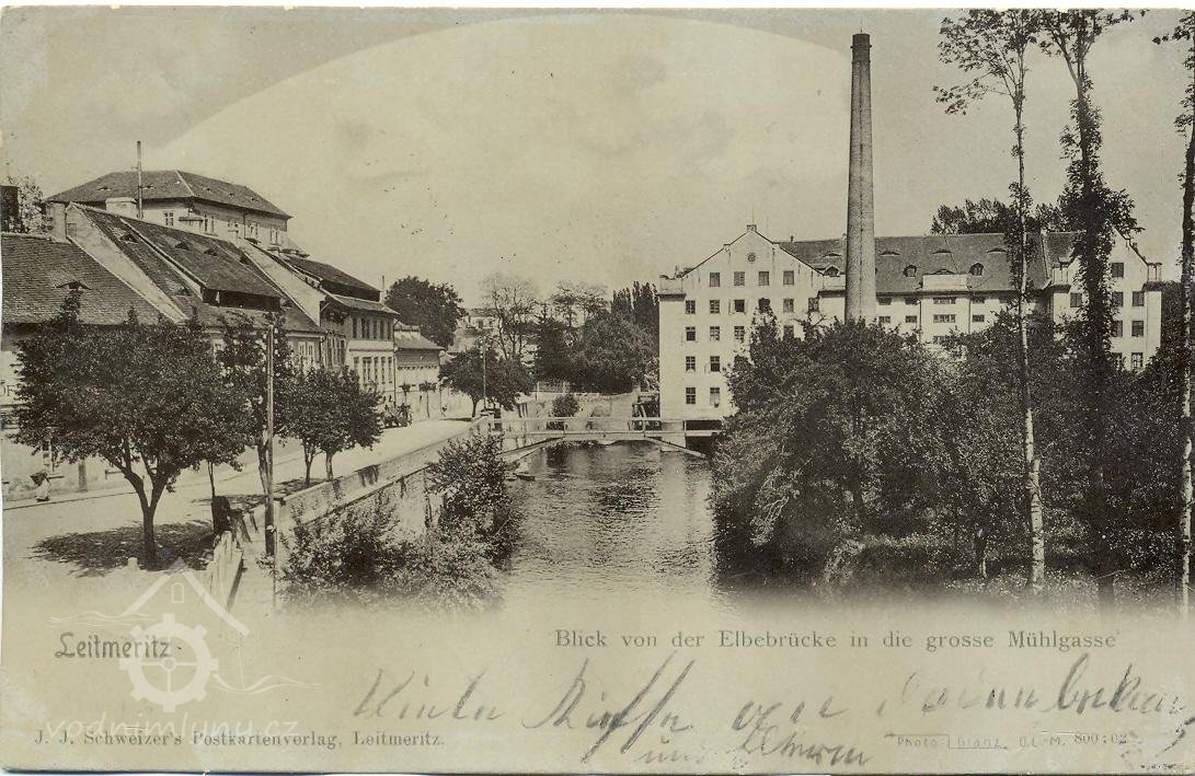 Mlýn postavil v letech 1852–1853 August Conrath (1814–1871) se svými bratry Emanuelem a Josefem, sklářskými podnikateli z Kamenického Šenova. Mlýn měl umělecké složení a již před rokem 1858 také parní pohon – po mlýně v Lovosicícha na Smíchově jako jeden z prvních v Čechách. Dne 7. března 1904 byli dědicové podniku nuceni provoz ukončit a mlýn nabídnut k prodeji – tehdy měl roční kapacitu 6 000 tun a dva parní stroje 50 a 30 HP. Zakoupila jej smíchovská konkurence, firma Ignaz Roubitcek, která provozovala také panský mlýn v Berouně a mlýny v Terezíně, a již po smrti zakladatele Ignaze Roubitcka (1833–1900) vlastnil podílník Max Bloch. Provoz byl záhy obnoven a pokračovali v něm (s přestávkou roku 1923) i dědicové firmy Quido a Konrád Bloch, kteří roku 1933 zadali pražské kanceláři Konstruktiva projekt nové parní kotelny a strojovny. V květnu 1938 se jim převodem na akciovou společnost podařilo mlýny firmy Hynek Roubitcek prodat. Mlýn v Litoměřicích je v provozu dodnes, produkcí 300 tun denně je největším v České republice.