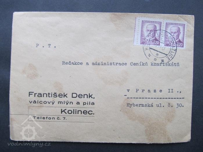 7. prosince 1885 kupuje mlýn František Denk. Rod Denků pak vlastní mlýn až do ukončení mletí po roce 1948, po kterém už fungovala pouze zdejší pila a to pro potřeby místního JZD.