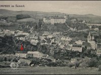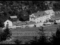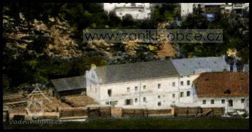 Velky areál mlýna a pily pod vimperským náměstím který po roce 1945 sloužil jako sídlo hospodářského družstva zanikl zcela beze stopy v průběhu 2. pol. 20. stol.