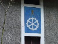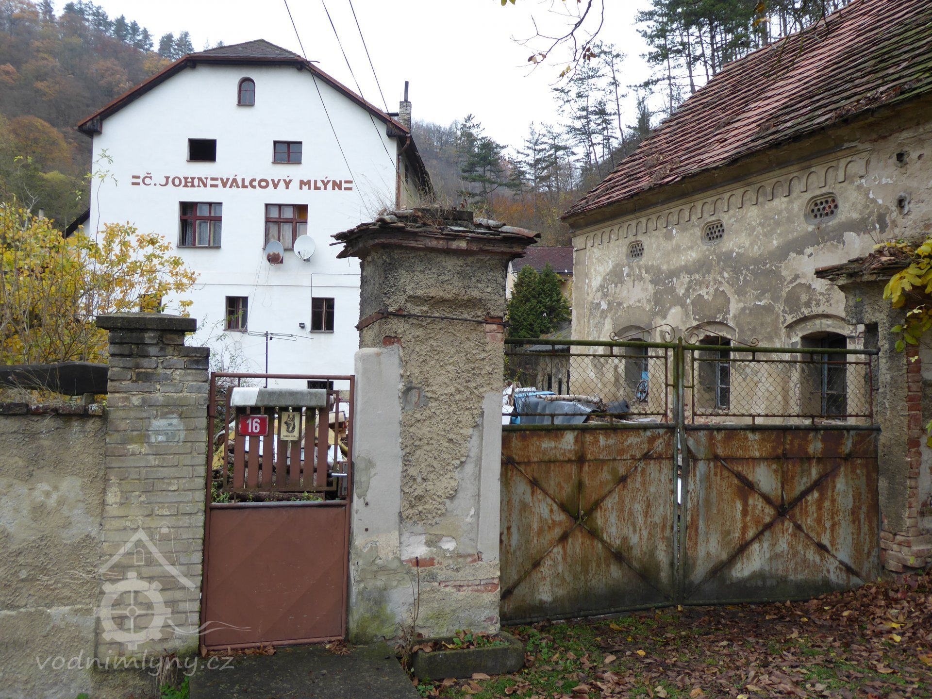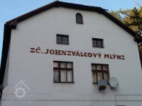 Na štítě hlavní budovy je nápis: Č. JOHN - Válcový mlýn. Na štítě malé budovy letopočet 1922. Na zdi menší budovy směrem k silnici je mlynářský znak - mlýnské kolo a kružítko.