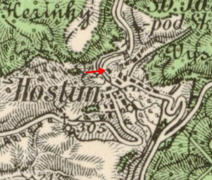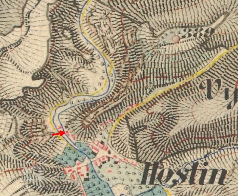 Patrový mlýn s nápisem ve štítě stojí na okraji obce směrem ke Svatému Janu pod Skalou. Mlýn je nedávno pěkně opravený.