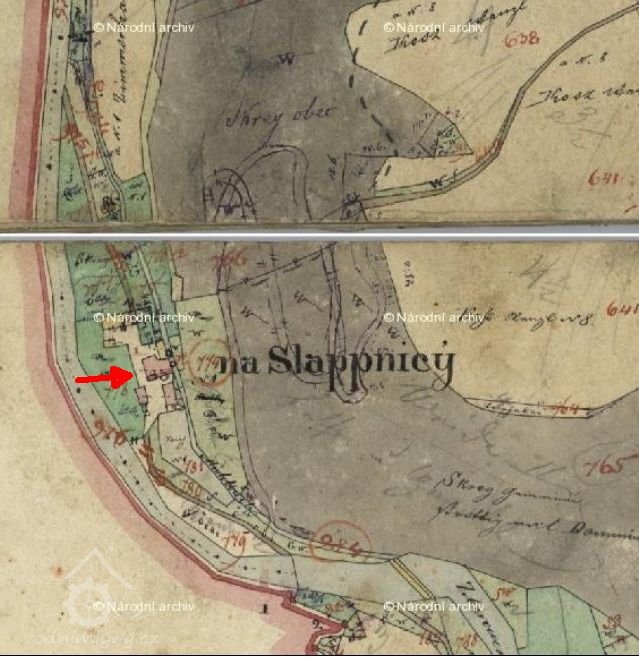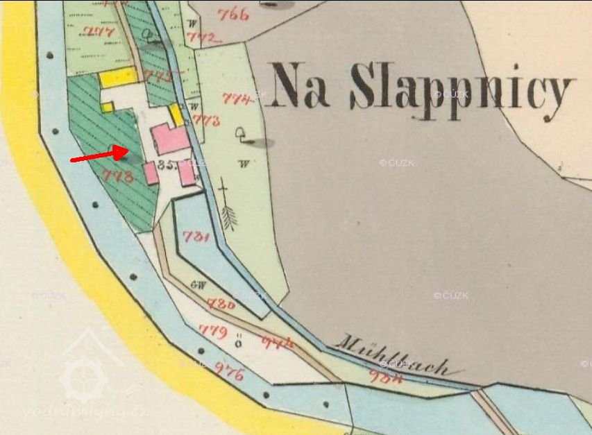 1651 Soupis obyvatel podle víry: mlynář Jan Slaptnička (45 let), manželka Lidmila (50), děvečka Anna (26), všichni poddaní katolíci