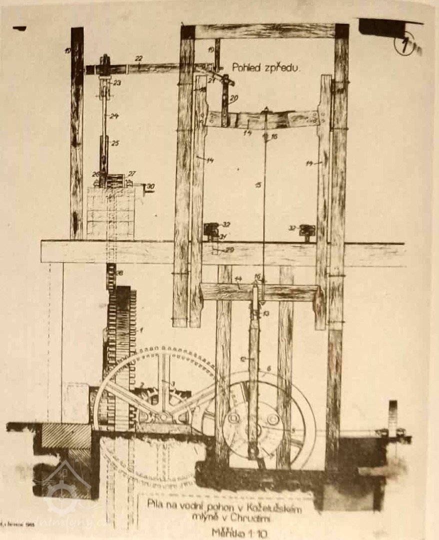 1932 po požáru instalována jednolistá pila se schopností zpracovávat velmi silné klády, které jinde nepořezali. Tradiční řešení vylepšené litinovým setrvačníkem a soukolím s dřevěnými palci. Pohon kolem na spodní vodu.