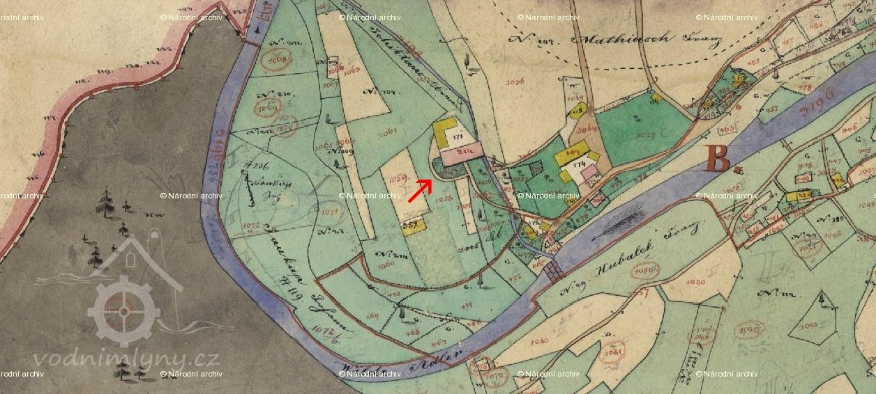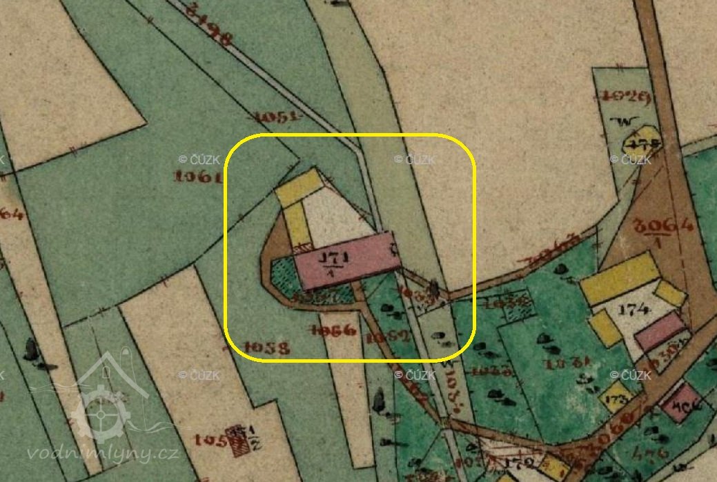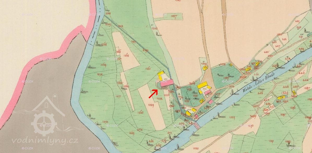 Na místě bývalého mlýna byla na počátku 20. století postavena tkalcovna. Původní čp. bylo 214.