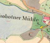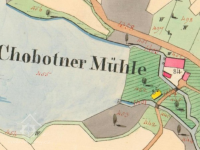 Ve zdech mlýnů na Rakovci jsou osazeny kamenné kvádry s vytesanými iniciálami majitelů mlýna a udělením vodního práva. Konkrétně na Chobotě jsou to iniciály R.S. (Richard Skoupil) a rok 1884. Tento kámen byl při úpravě mlýna na rekreační středisko (OZAP Praha) v 80. letech 20. století vyjmut ze zdiva mlýna a skončil na skládce.