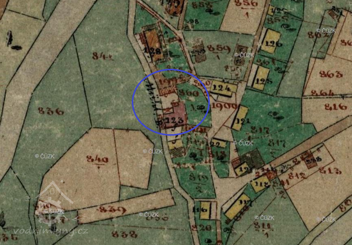 Popis1930: 1 turbína Francis, hltnost 0,8 m3/s, spád 2,5 m, výkon 20 HP